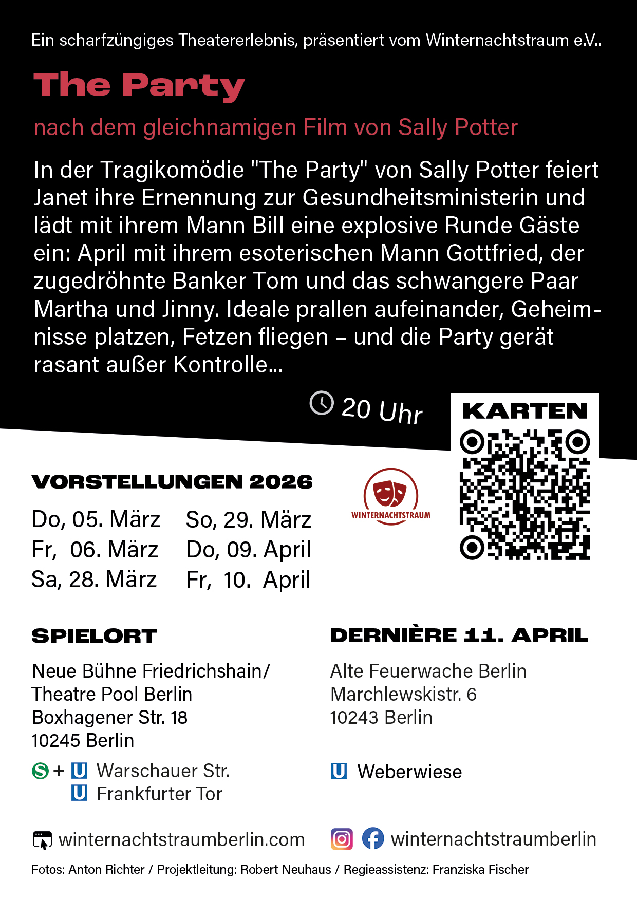 Gegründet im Jahr 2002 als junge, eigenständige Theatergruppe haben wir seither im Winternachtstraum e. V. regelmäßige Theaterstücke mit wechselnder Besetzung auf die Berliner Bühne gebracht.